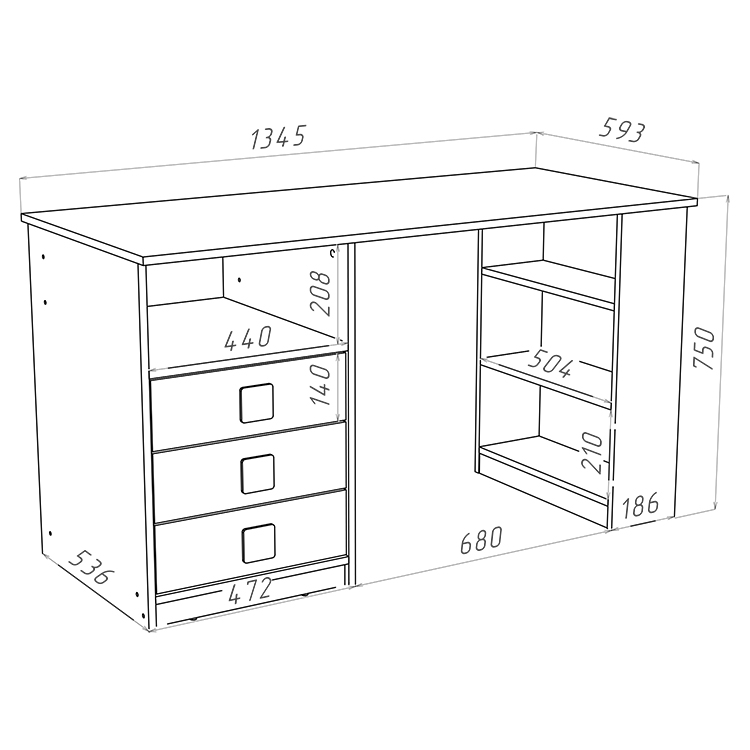 габариты (Д×Ш×В): 1345 × 593 × 750