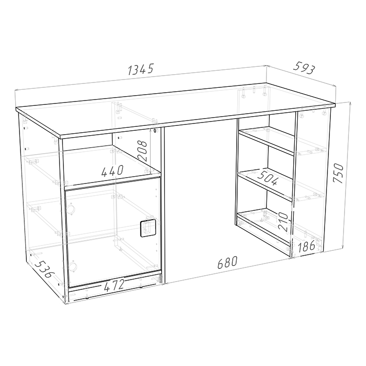 габариты (Д×Ш×В): 1345 × 593 × 750